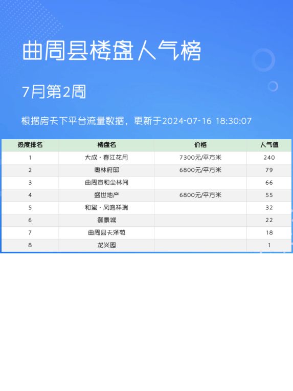 大家好,买房子可是人生大事!🏡今天,我带大家来看看曲周县的人气楼盘榜单,这些楼盘不仅热度高,而且各有特色。无论是交通便利、教育资源,还是户型设计,都是购房者关注的焦点。希望这份榜单能给大家一些实用的购房参考。