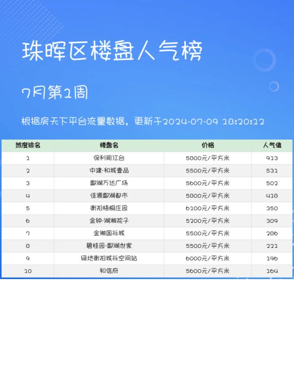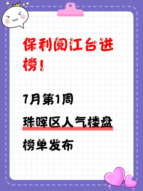 👑珠晖区人气楼盘榜单:保利阅江台荣登榜首🏆