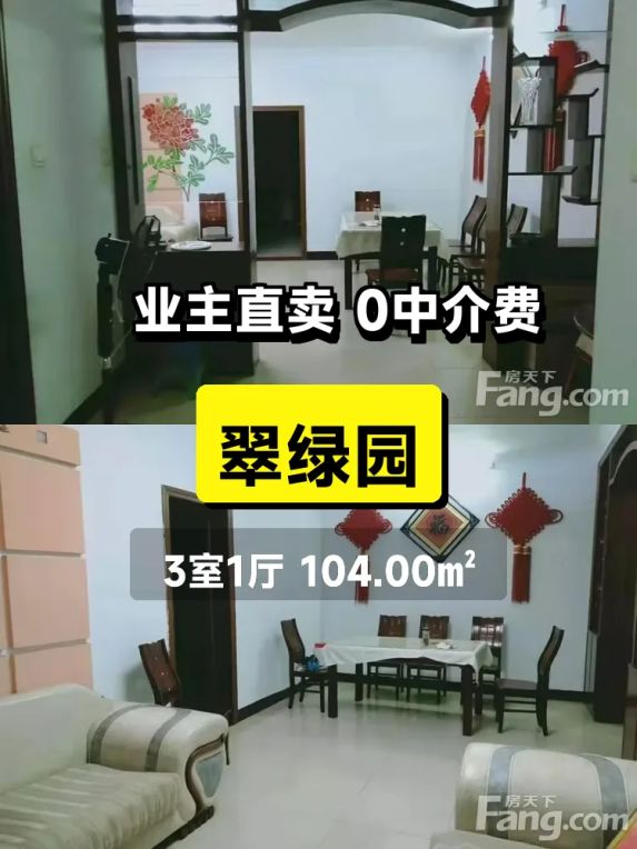 标题:急售!翠绿园南向大三居💖业主含泪自住好房