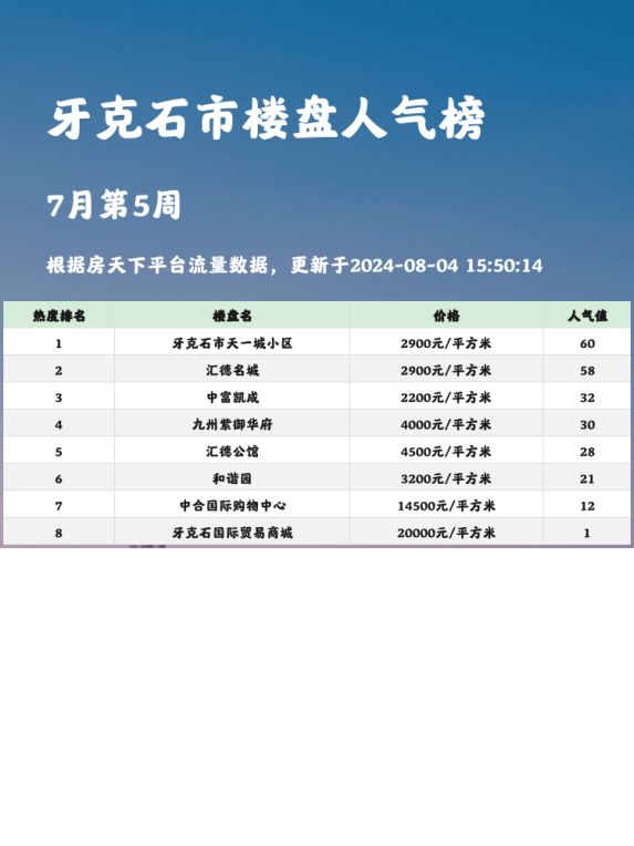 牙克石市人气楼盘榜单:天一城小区夺冠🏆