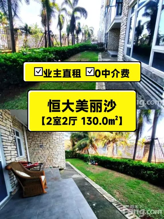 自家精装两居室出租🌴海甸岛恒大美丽沙南北通透大阳台,业主直租无中介!