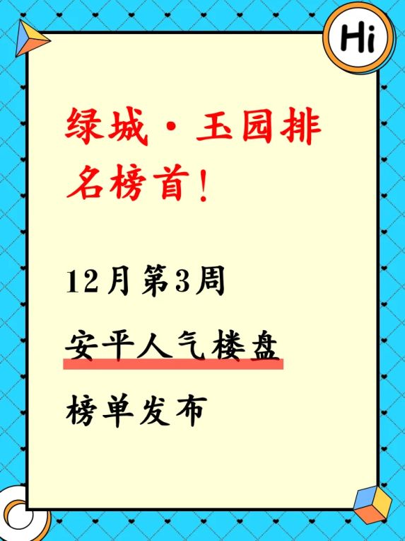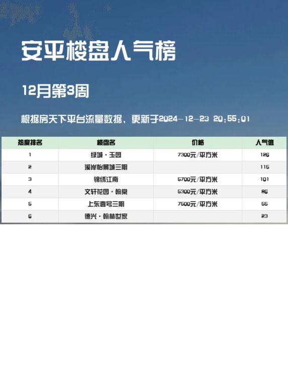 安平人气楼盘榜单,绿城·玉园成榜首!🏆
