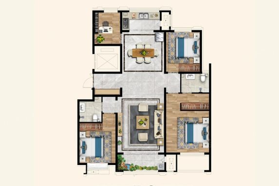这届楼盘最会玩空间魔术?该小区151㎡四居室采用「游园式动线」设计,从玄关到儿童房竟要经过三条走廊。不过南北双阳台配置确实惊喜,实测北向生活阳台晾晒衣物时,南向观景阳台仍能保持会客体面。
