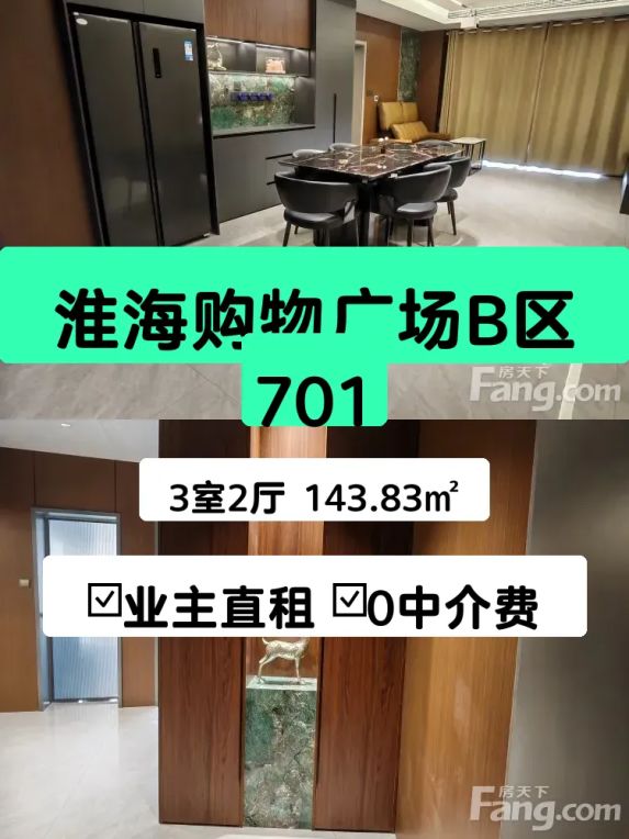 房子在 **淮海购物广场B区701**,143㎡的大三居,南北通透,采光超级好!主卧带独立阳台,早上阳光洒进来特别舒服~ 🌞 装修是豪华风格,家具家电都齐全,直接拎包就能住,省心!