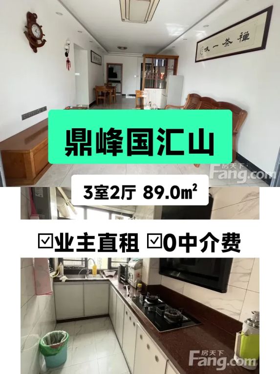 标题:自家南向三房出租啦!鼎峰国汇山89平只要2300💰
