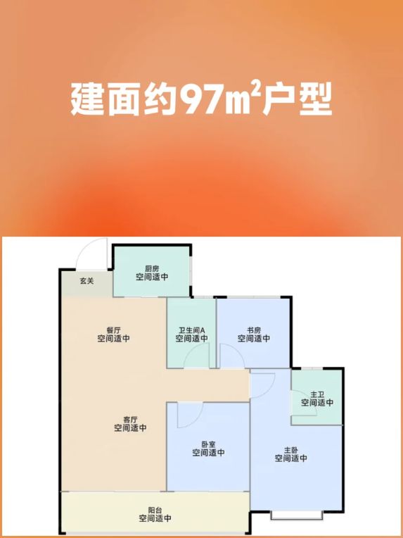 建面约97㎡三室两厅