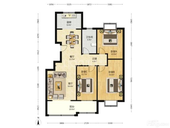 🌟 超大空间:3室2厅,主卧朝南带阳台,两个次卧也都很宽敞
