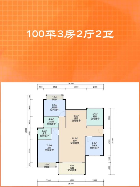 【100㎡三房两厅双卫】