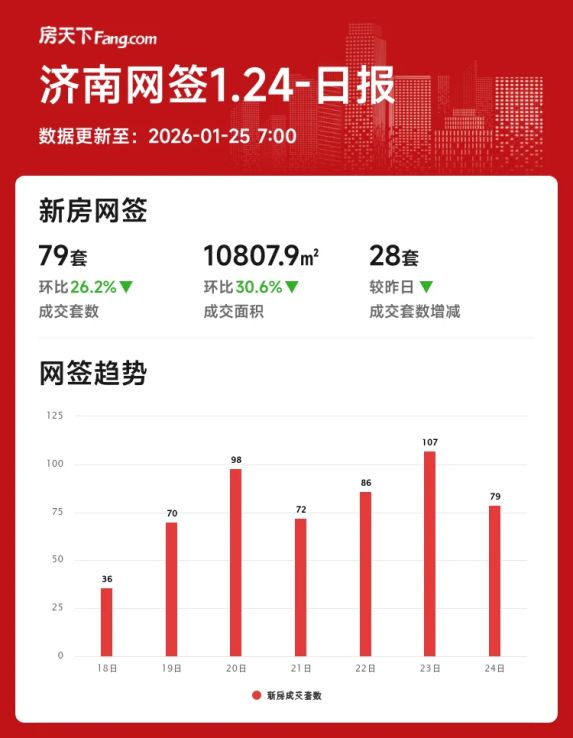 2026年1月24日济南楼市入冬?新房成交全线回落!