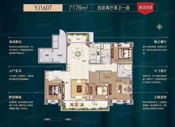 1️⃣ 178平南北通透大四居!全明户型阳光洒满屋,主卧+三间次卧都够宽敞,朋友来玩都夸格局好~