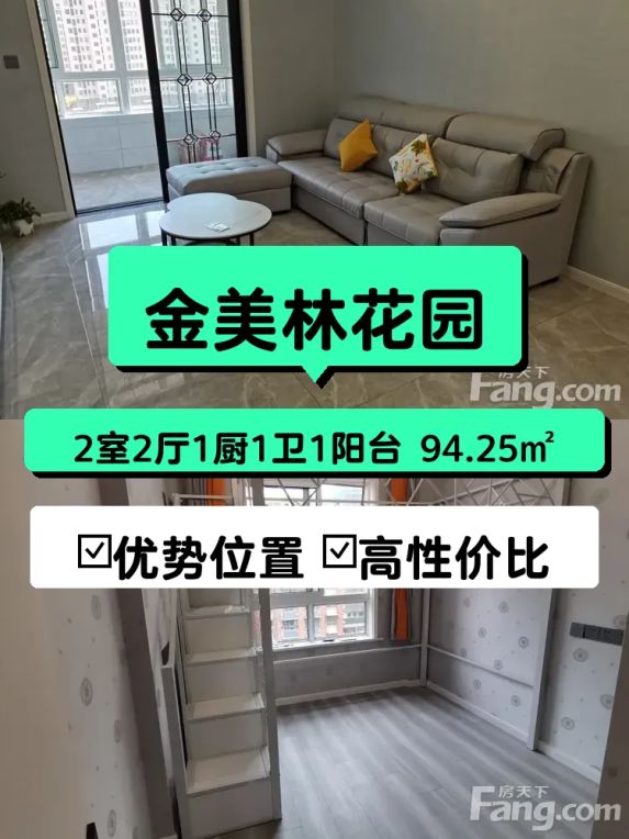 金美林花园94平精装两房 业主直租无中介 随时拎包入住🏠
