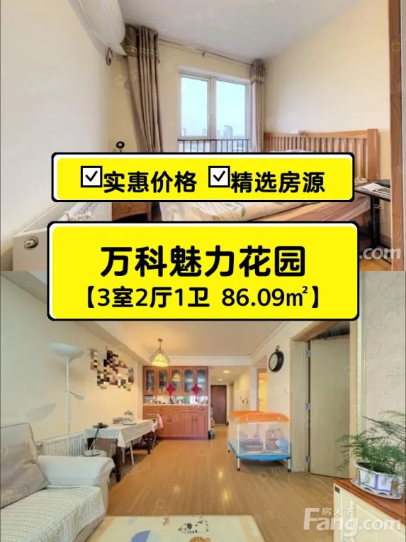 万科魅力花园三房,西区楼王,带暖气,东边户南北通透,无遮挡视野及通风采光好,出门就是商业街