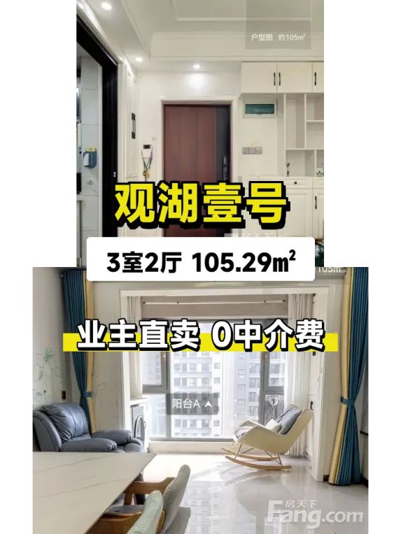 标题:自家观湖壹号南向三居急售,拎包入住超值!🏡