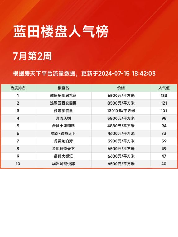 在如今这个房市复杂多变的环境中,选对楼盘至关重要📈。一份靠谱的人气楼盘榜单,能为大家购房提供宝贵参考🔍。这次为大家盘点蓝田区域的人气楼盘前三名,看看有哪些优质选择吧!