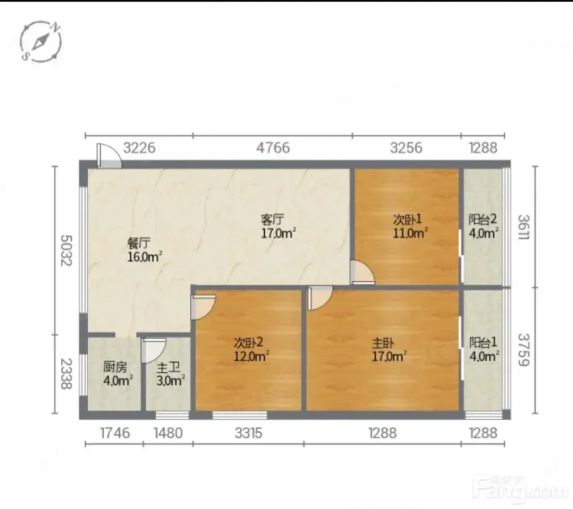 2️⃣ 三间卧室都方方正正,主卧、次卧能摆1米8大床还带整面衣柜!