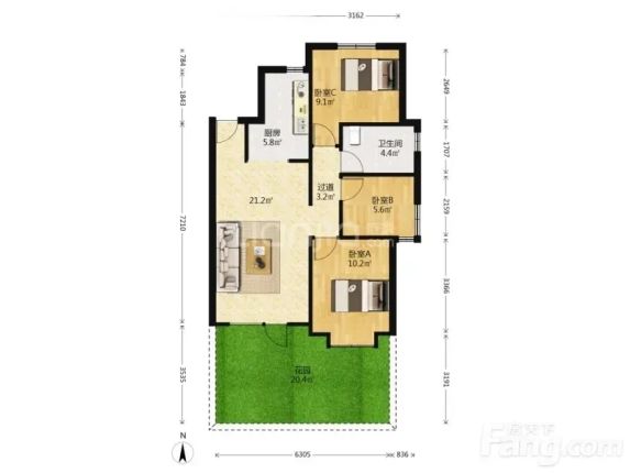 大厂湖韵蓝湾 3室2厅 89.23㎡ 600元/月