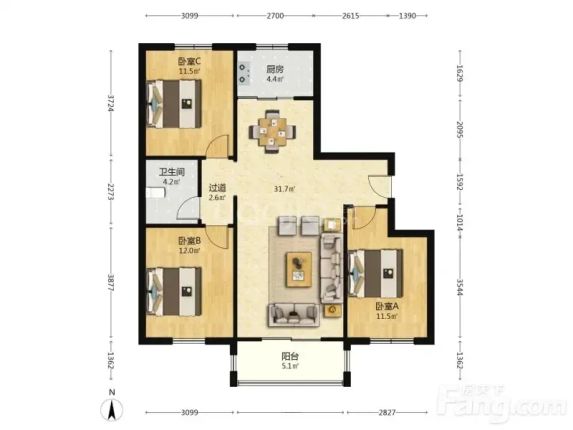广阳韩营小区114平米合租主卧 3室1厅1卫