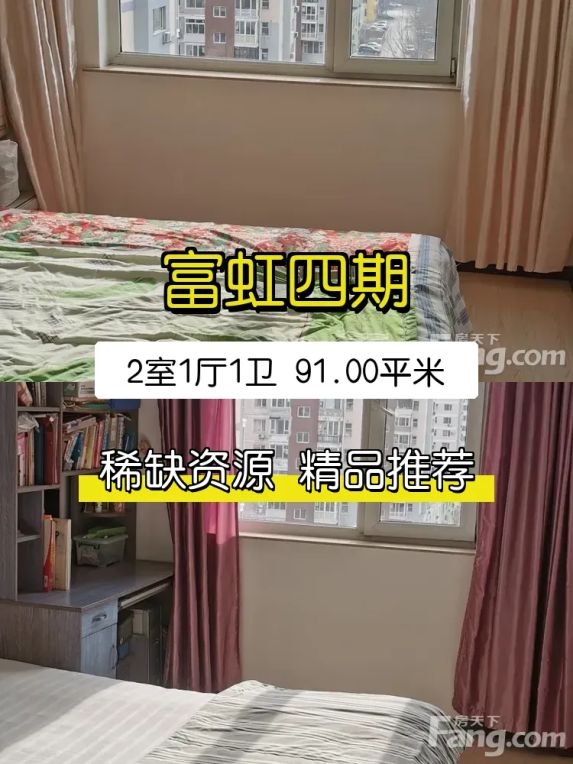 房子位于富虹四期小高层,前方无遮挡,视野好,采光超级棒!91平米的建筑面积,两室一厅一卫的户型,布局合理,空间利用率高。最让我喜欢的是南向的窗户,阳光洒满整个客厅,冬天特别暖和。