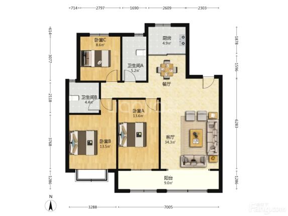 #房主直售、南北通透、三居室、黄金楼层、户型解析