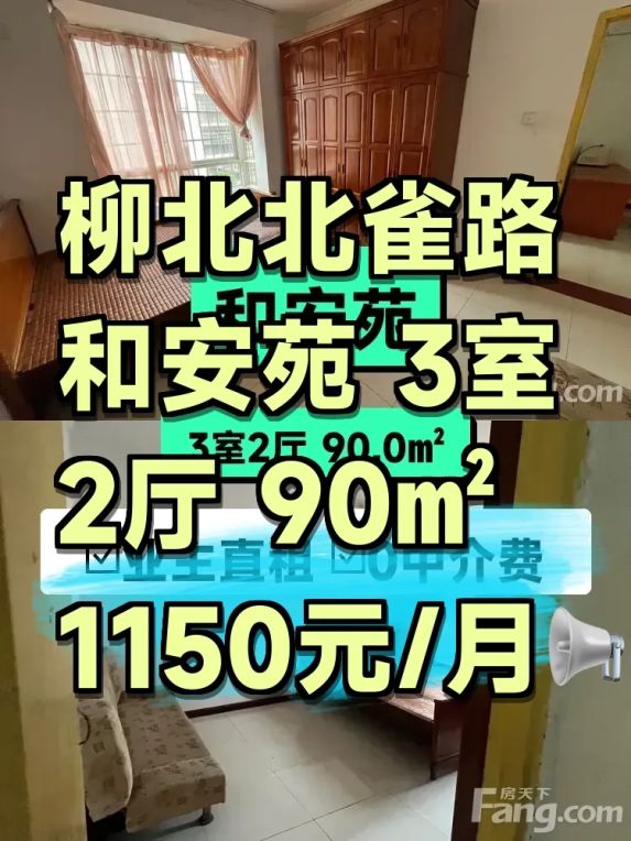 标题:自家和安苑三房直租!南北通透90平只要1150💰