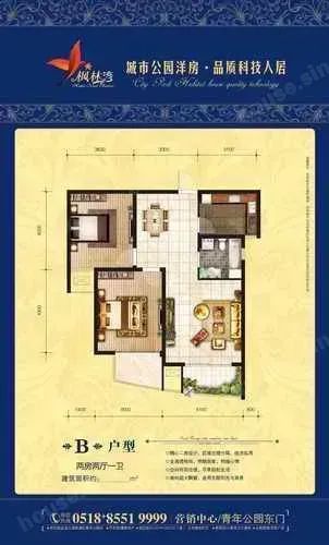 海州青年公园枫林湾 2室2厅 92㎡ 2000元/月