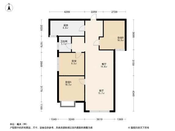 和平万科时代之光 3室2厅 99.67㎡ 1100元/月