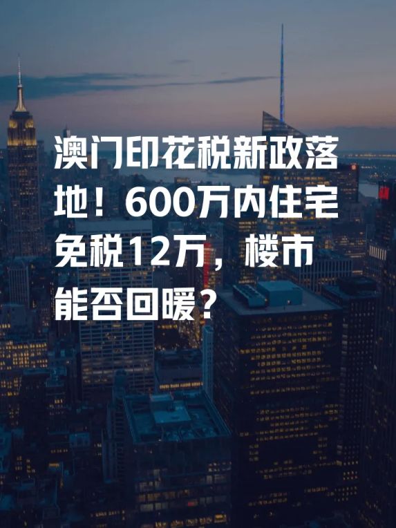 澳门印花税新政落地!600万内住宅免税12万,楼市能否回暖?