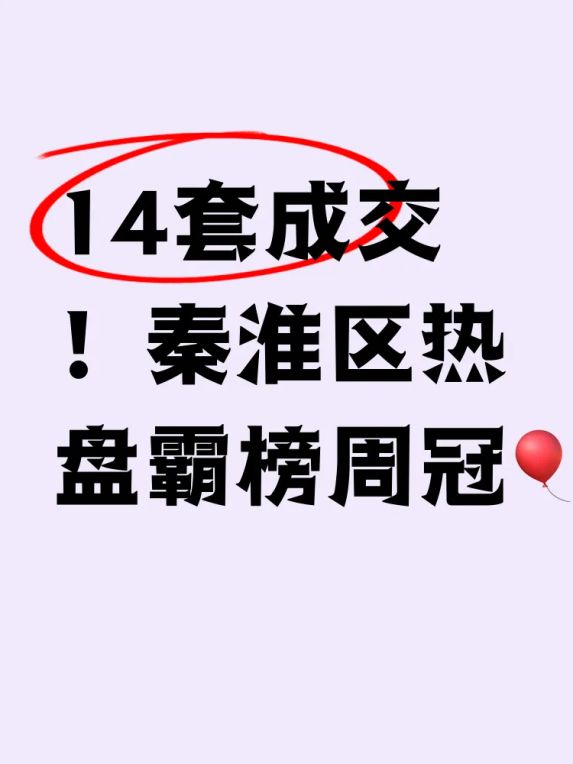 14套成交!秦淮区上周楼市黑马竟是它