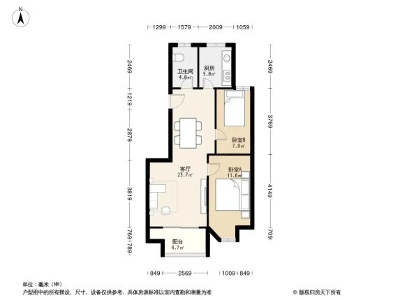 栖霞 星叶枫情水岸 2室2厅 77.45㎡ 155万