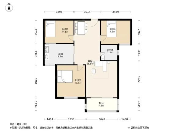 南昌县昌南汇仁阳光花园 3室2厅 89.08㎡ 1300元/