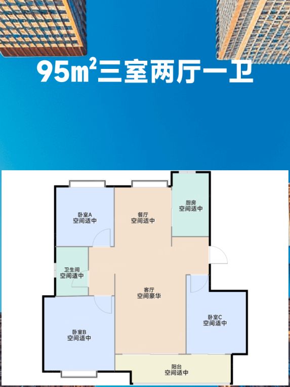 ✨ 95㎡三室两厅一卫: