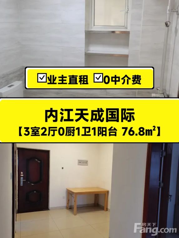 业主直租!内江天成国际76㎡阳光三居,南北通透才1200/月 🌟