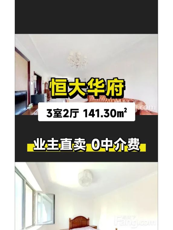 标题:自家恒大华府141平三居急售!南北通透18层好房💫