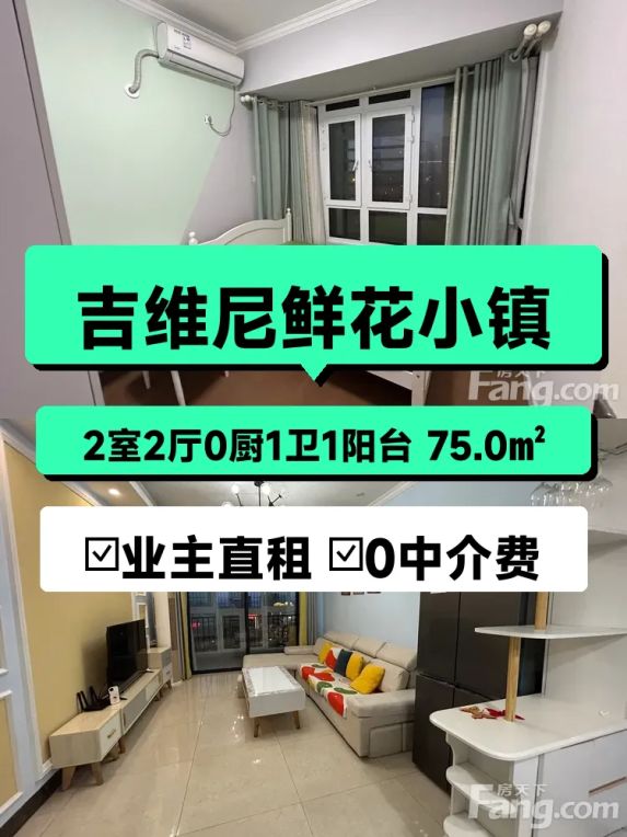 江南区自家精装两房出租!吉维尼鲜花小镇75平只要1800/月🌼