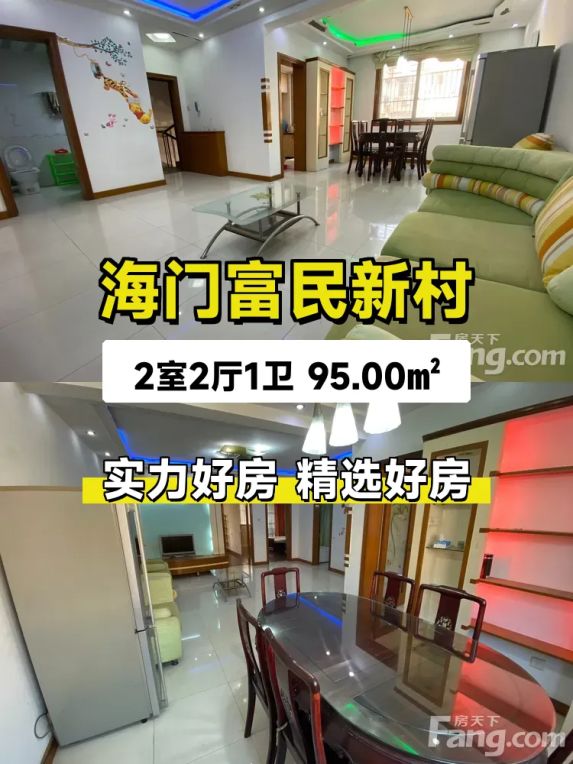 海门富民新村104幢二室二厅,紧靠狮山路、丝绸路口,距能仁中学、海门中学百米之遥,位置绝佳。家电家具齐全,拎包入住。买就送:7平米车库,跑步机,空气净化器。