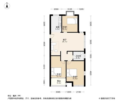 - 独立卫生间+明厨明卫,3个房间都方正,朋友来住都说布局超合理