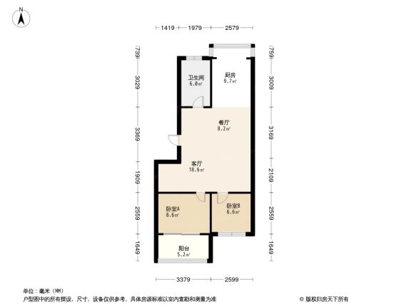 合租:主卧崇川新城东区世纪东城 2室1厅 30㎡ 850元/
