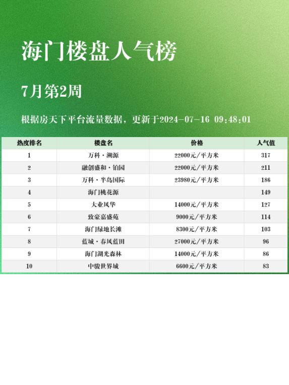 海门人气楼盘榜单,万科·溯源荣登榜首 🌟