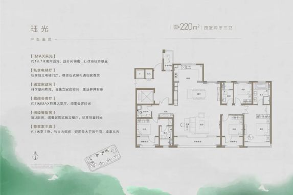 ▲【空间魔法师】220㎡四居竟藏着全套家政间?开发商把13.8米南向面宽揉碎了重组——主卧4米飘窗+双台盆设计,长辈房配置独立卫浴,就连家政区都留有叠衣台。这种「浪费式设计」恰恰是改善家庭最需要的仪式感。