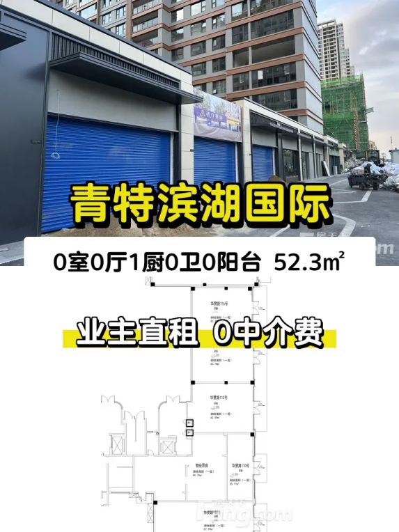 【优质区位】商铺位于青特滨湖国际商圈,属于临街门面,人流量稳定,商业氛围浓厚,适合各类零售、服务等业态经营,区位优势明显。【合理空间】建筑面积52.3平方米,面宽6米、进深9米的方正格局,搭配4米层高,空间利用率高,可根据经营需求灵活布置,满足多种商业用途。【实惠条件】租金3500元/月,支持年付方式,提供1个月免租期,起租期12个月,无转让费,经营成本可控,适合创业者或品牌拓展使用。