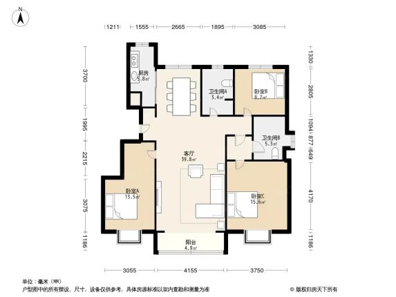 标题:自家臻园三居急售!南北通透122平仅150万💖