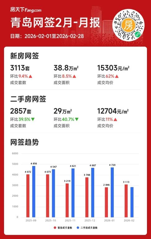 青岛2026年2月楼市月报:新房量价逆势上扬 二手房进入深度调整