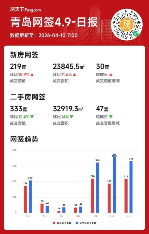 2026年04月09日青岛楼市单日新房回暖,二手市场降温!