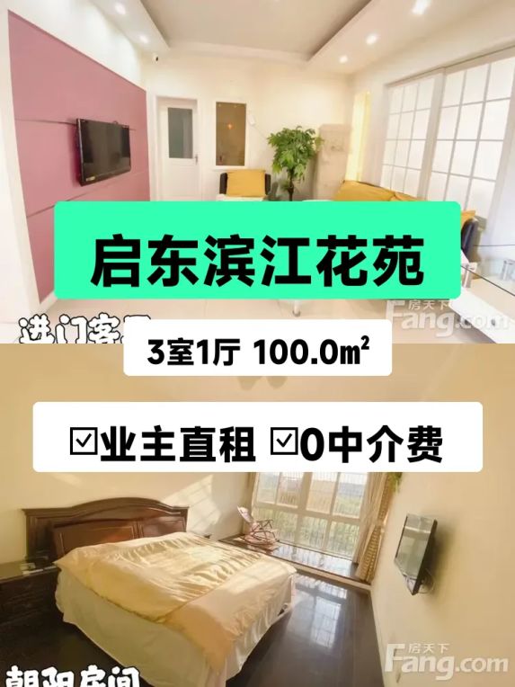标题:自家南向三居室出租🌿 启东滨江花苑100平仅1400/月