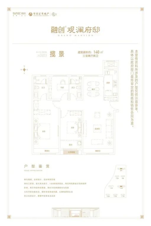 标题:急售!自家140平观澜府邸三居✨南北通透凤凰层