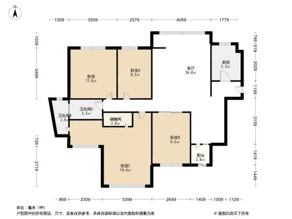 自家卓辉汇景城126平四房急售!南北通透明亮房