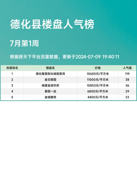 🌟德化县人气楼盘榜热度排名第3名: 金交颐园