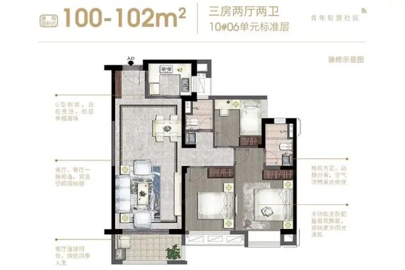 🌟房子在20楼(总高35层),102.21㎡的三室两厅,客厅主卧全朝南!冬天坐在地毯上晒太阳暖烘烘的,夏天开窗就有穿堂风🌬️~