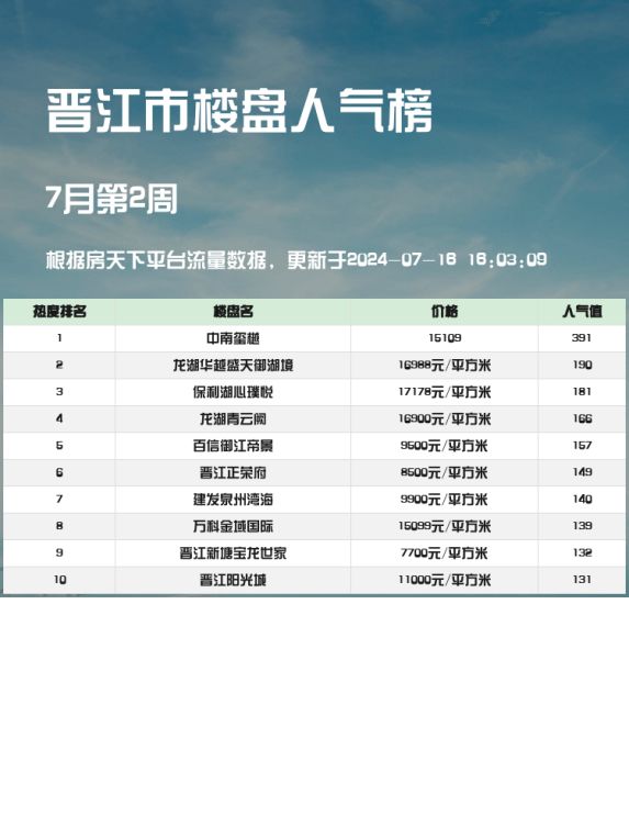 🏡 在选择新家时,人气楼盘榜单无疑是购房者的好帮手。通过这些榜单,我们可以了解市场的热度和趋势,找到最适合自己的房源。特别是当今市场,地段、价格、配套设施都是买房选房的重要考量因素。下面就来看看晋江市人气楼盘榜单中的前三名吧!