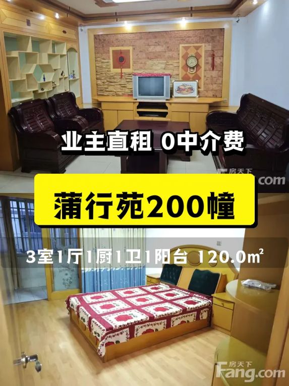 自家蒲行苑精装三房出租啦!南北通透1900/月